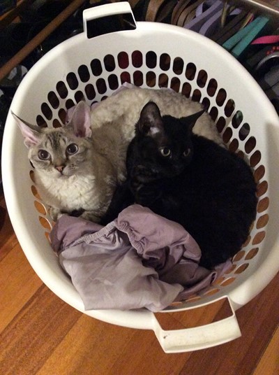 Happy at home with her brother George
